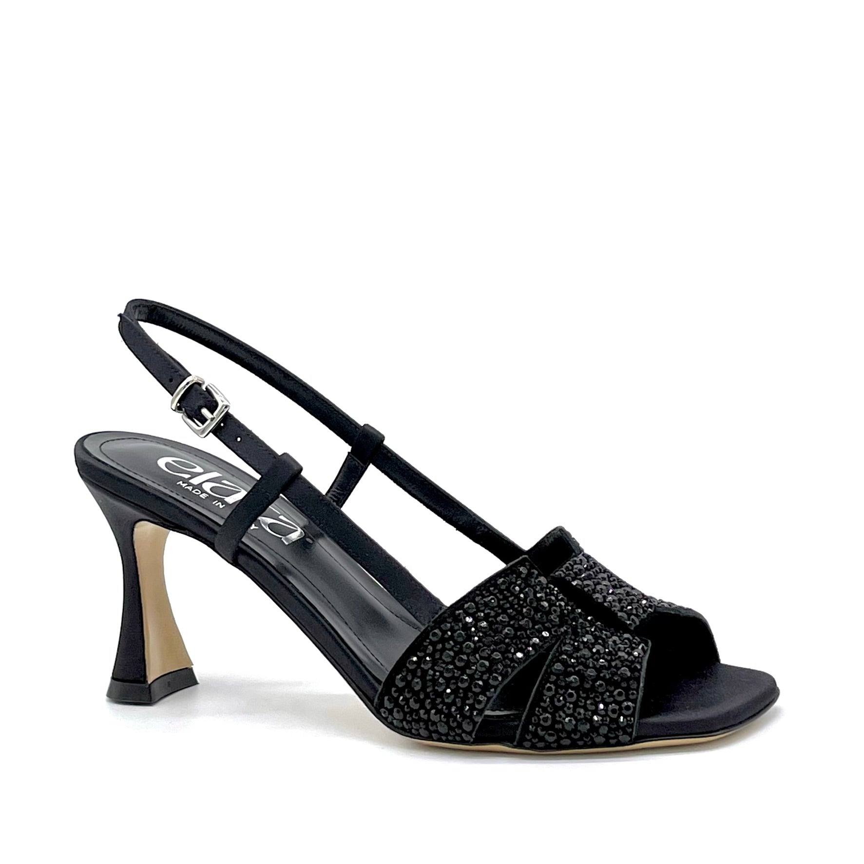Sandalo in raso di seta nero e applicazione di strass – Cod. 14116