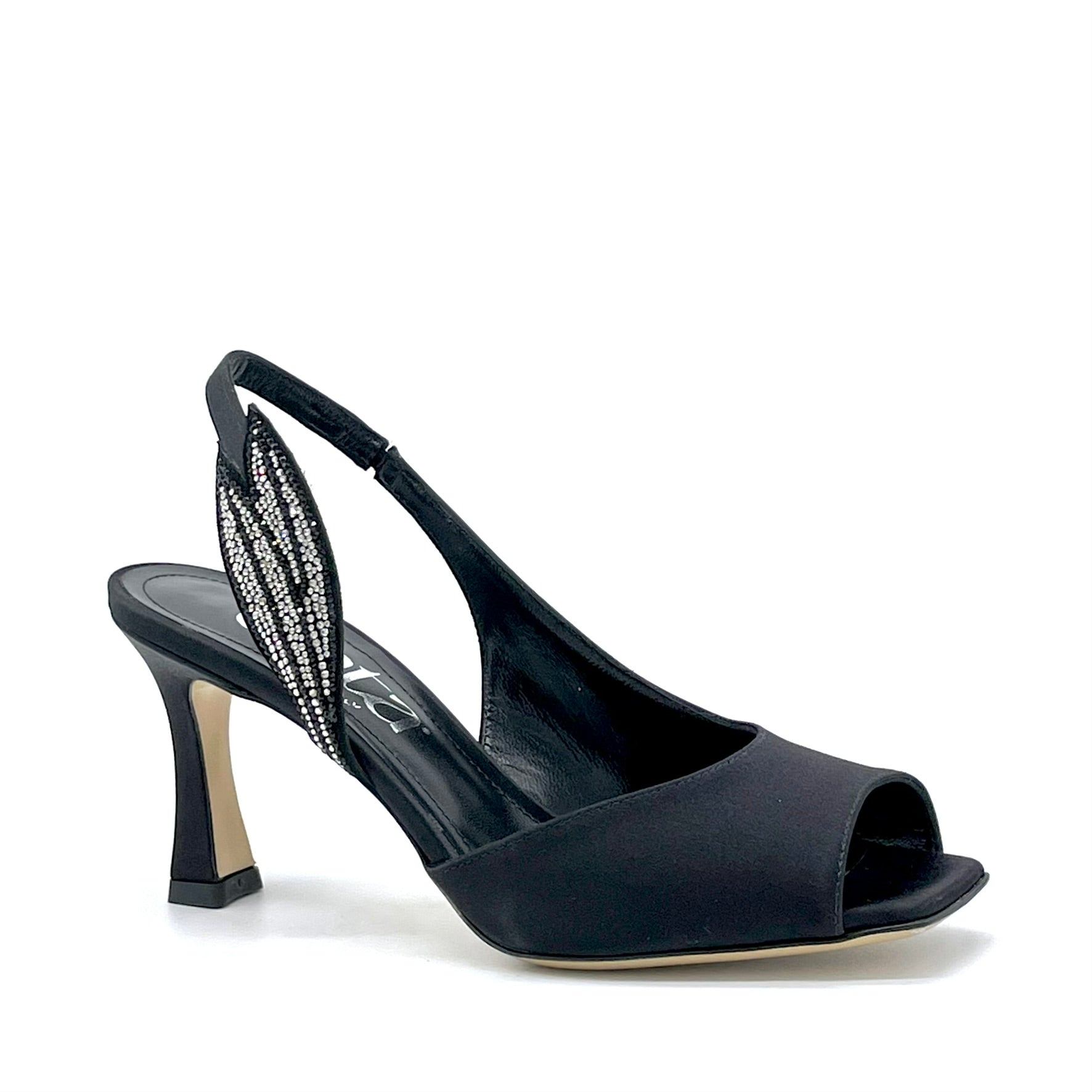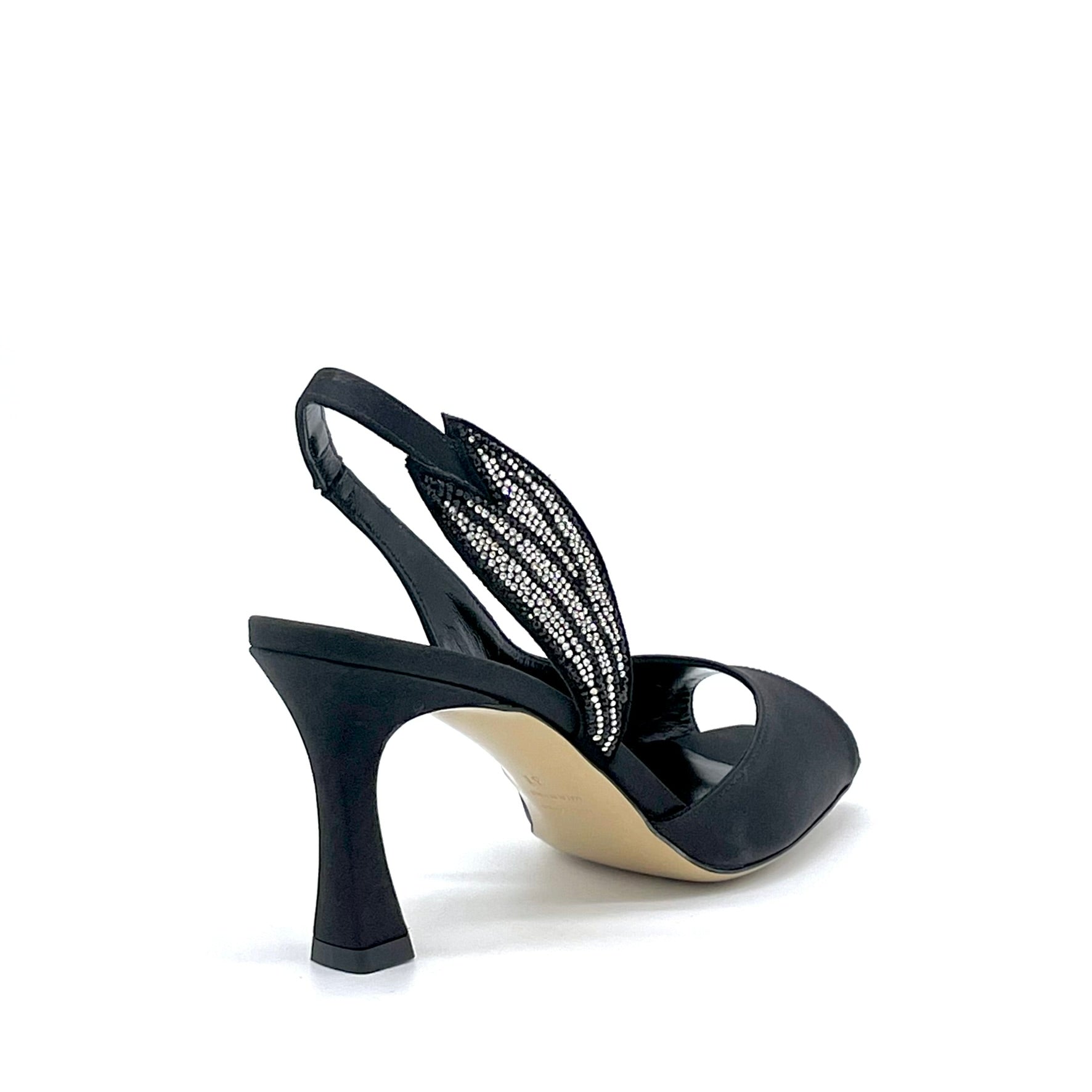 Sandalo in raso di seta nero con applicazione di strass – Cod. 16118-1