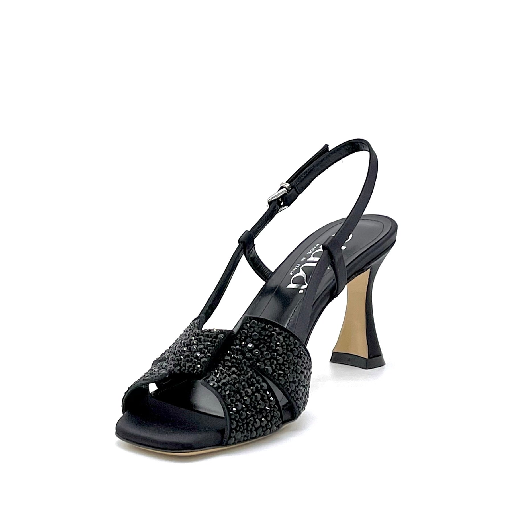 Sandalo in raso di seta nero e applicazione di strass – Cod. 14116